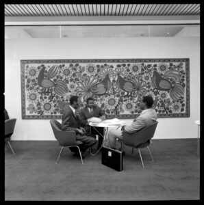 Para la Tercera Conferencia de las Naciones Unidas sobre Comercio y Desarrollo (UNCTAD III) el gobierno de la Unidad Popular construyó en Santiago un edificio inaugurado en 1972. Las formas de implicancia de los distintos agentes tienen que ver con un clima de época que iba filtrándose en muchos estratos de la vida chilena. El historiador del Arte Ernesto Saúl señala que “en Chile, a partir del 4 de septiembre de 1970, los artistas comienzan a preocuparse con más intensidad de los problemas relacionados con lo político y lo social” (Saúl, 1972), sin negar las iniciativas que habían estado fraguándose en los años sesenta como la respuesta chilena al arte experimental o conceptual, para el autor es en la coyuntura de la Unidad Popular cuando la pregunta sobre la función social del arte se va a agudizar.