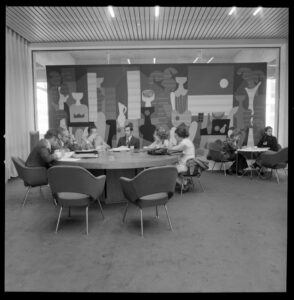 La articulación del proyecto arquitectónico con las propuestas aportadas por los artistas visuales que fueron invitados/as a realizar una intervención artística para el edificio marcaron un hito en la manera de entender la procesualidad, no solo estaban señalando una práctica material y formal dialogante entre la producción artística y las condiciones de uso del edificio que se construía, sino que estaban señalizando una temporalidad ideológica, donde el proceso de materialización se reflejaba en la medida que trabajaban cada día colectivamente en las obras. Esta experiencia pudo apreciarse en la forma de hacer las obras para que tuvieran una función práctica y a la vez las mismas fueron creándose mientras el edificio se estaba construyendo. Esto permitió mayor movilidad a la hora de pensar los sitios donde se ubicarían y la función específica que podrían tener algunas obras.