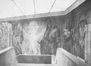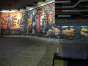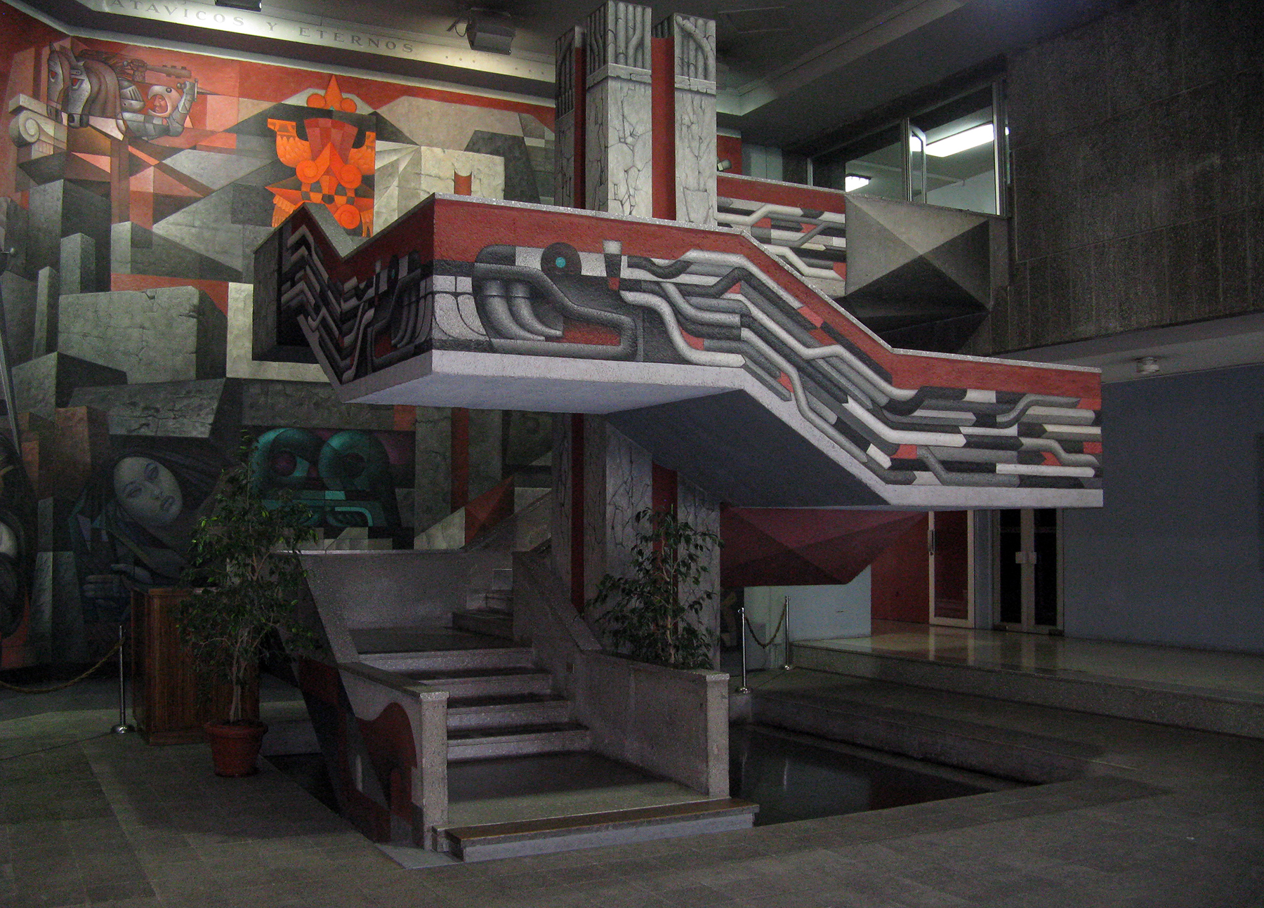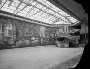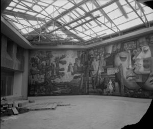 Fue necesario, entre otras modificaciones, incorporar una sala de grandes magnitudes para albergar el mural Presencia de América Latina, obra del artista mexicano Jorge González Camarena, asistido por un equipo de artistas mexicanos y chilenos introducidos por González en las técnicas del muralismo. Se trata de una obra de 300 m2, desplegada a lo largo y ancho del muro que recibe a quienes visitan el lugar, encabezada por un verso del poeta Pablo Neruda.
