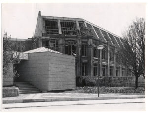 Por otro lado, resonaba entre la comunidad y las autoridades que este edificio constituía un ingreso problemático al campus de la Universidad de Concepción. La Diagonal Pedro Aguirre Cerda, diseñada como antesala al Barrio Universitario, estaba lista, por lo que solo faltaba —aún falta— terminar la Plaza Perú, preámbulo a la esquina que terminó siendo la entrada principal al campus. Ameritaba que ella ofreciera más que un edificio tosco y dañado en su estructura; un inmueble en diálogo con las construcciones en semicírculo que ya rodeaban la plaza.