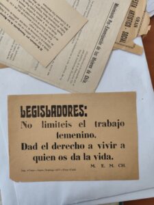 “Lucharemos contra el Fascismo, porque tiende a privar a la mujer de sus más elementales derechos adquiridos, considerándola solamente apta para desempeñar las ocupaciones domésticas. Y contra la Guerra por ser una crueldad inhumana y que sirve tan sólo para proteger los intereses comerciales”
