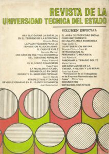 La Revista de la Universidad Técnica del Estado nos permite reflexionar sobre cómo el campo del diseño en América Latina ofrece una valiosa plataforma para examinar y comprender las transformaciones políticas, sociales y culturales más amplias en la región. En palabras de Beatriz Sarlo, las revistas son un “laboratorio de ideas” donde se experimentan propuestas estéticas y posiciones ideológicas. Un testimonio material de los debates y coyunturas históricas que acompañaron los procesos de modernización durante la Unidad Popular.