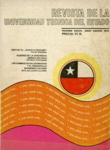 “La Revista de la Universidad Técnica del Estado, como publicación comprometida con el destino revolucionario de nuestro pueblo, procura de esta forma dar respuesta a las grandes interrogantes planteadas por la experiencia que vive Chile (…). Finalmente, unas breves palabras de reconocimiento por los compañeros del Taller Gráfico de nuestra Universidad: han aplicado ellos toda su valiosa experiencia artística en la edición de estas páginas”. Revista de la Universidad Técnica del Estado. (1972–1973, noviembre-febrero). Nota. Revista de la Universidad Técnica del Estado, (11–12), 5.